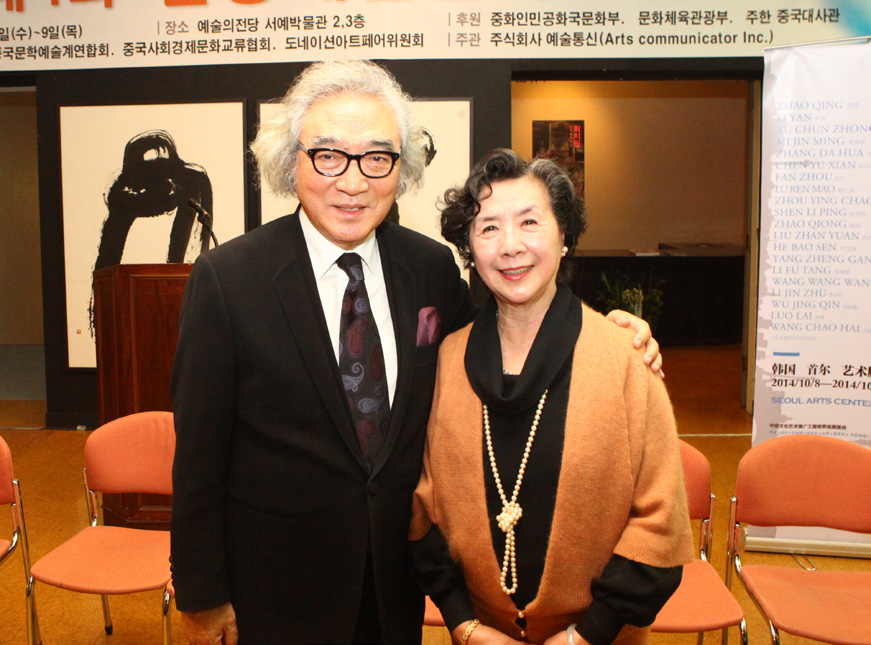 2014108日在韩国首尔艺术殿堂,协会名誉会长赵青与韩国文化艺术界嘉宾在开幕式现场合影